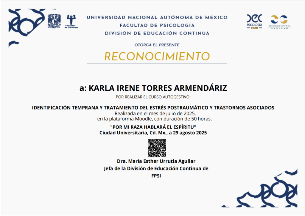 Deseo que te sientas en confianza, y admiro tu decisión de responsabilizarte de tu salud mental en una época donde todavía existe el tabú, el prejuicio y la ignorancia. Tu iniciativa es un paso más del cuidado de tu persona y la recompensa es el aprender a mantener tu bienestar integral.